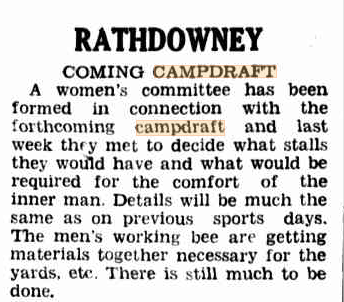 Friday fun. A clipping from the Beaudesert Times in 1952. The ladies of the district preparing for the Rathdowney Campdraft.